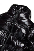Long padded jacket with logo embossed Maple Leaf logo. Polished finish and contemporary design come together in a garment that wraps up the coldest days with warmth and character.