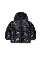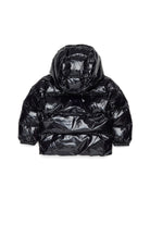 Short padded jacket with rubberized Maple Leaf logo. The glossy finish and contemporary design come together in a garment that combines style and function, wrapping up the coldest days with warmth and personality.