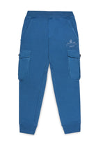 Fleece cargo pants. Elastic at waist and ankle. Maple Leaf tone-in-tone rubber effect logo on the front. Front slash pockets. Gabardine side pockets. Made of 100% cotton.