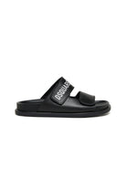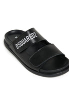 Slide sandals with a contrasting DSQUARED2 logo on the front strap and double adjustable bands. A distinctive and contemporary style.