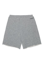 Fleece shorts with logo and lettering applied on the back, featuring raw-cut edges.