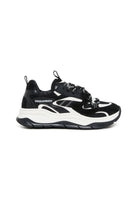 Low lace-up two-tone trainers with contrasting Dsquared2 logo on the side and tongue. Leather upper with inserts in various materials. Leather inner lining. Thermoplastic rubber sole. Made in Italy.