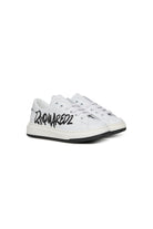 Low lace-up trainers with Dsquared2 branded glitter on the side. Maple Leaf on the back. Calf leather upper and inner lining. Thermoplastic rubber sole in contrasting colour. Made in Italy.