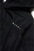 Long windbreaker jacket made of nylon. Features gathers that characterise the garment. Institutional logo embroidered in contrasting color on the front on the heart side. Fixed hood. Front zip closure. Front pockets. Elastics on cuffs. Lined inside.