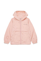 Windbreaker with printed logo and hood, featuring clean lines and elasticized details at the cuffs and hem.