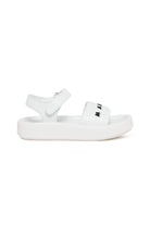 Strap sandals. Institutional logo embroidered in contrasting colour on the upper. Sheepskin leather upper. Calf leather inner lining. Thermoplastic rubber chunky sole. Made in Italy.