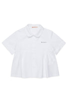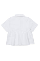 Short-sleeved shirt with logo and gathered hem in 100% cotton. A style with a fresh, modern design.