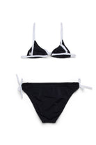 Lycra bikini swimming costume with shoulder straps. Customised with institutional logo in contrasting colour. Adjustable lacing.