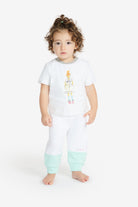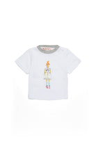 Short-sleeved jersey T-shirt. It features a print of a drawn doll on the front. Crew-neck in contrasting colour. Practical snap button closure on the shoulder. Made of 100% cotton.