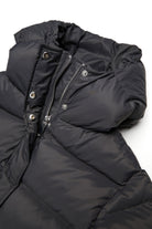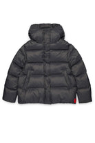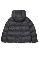 Padded winter jacket with hood made of shiny nylon, ideal for the winter season. Featuring a clean, modern design, it provides comfort and protection even on the coldest days.