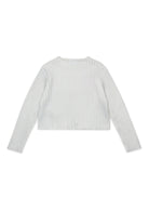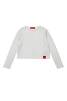 Long-sleeve boxy pullover in ribbed wool-blend knit. Soft and warm, it is embellished with a mylar finish that gives the garment a bright appearance. Ideal for parties and evening events.