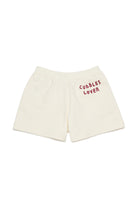 Fleece shorts with printed logo and applied lettering on the back. The design features a clean cut with an elastic waistband and side pockets.