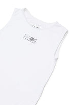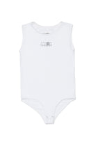 Sleeveless bodysuit made of stretch cotton jersey. Numeric logo in contrasting color on the front. Practical snap-button opening along the crotch. Iconic seam at back.