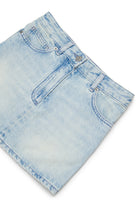 Denim mini skirt with logo. Essential lines, light wash, and a logo patch applied on the back for a contemporary style.