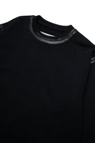 Long-sleeved fleece pullover embellished with hand-applied glossy plucking on crew-neck and armholes. A handcrafted detail that gives the garment an original and sophisticated look.