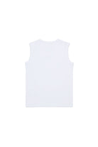 Sleeveless logo T-shirt made of cotton. The model features the iconic back seam.