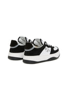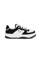 Low lace-up two-tone trainers with N°21 Milano logo branded on the side. Calf leather upper and inner lining. Thermoplastic rubber sole. Made in Italy.