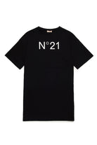 Crew-neck short-sleeved cover-up dress in jersey. N°21 Institutional logo in contrasting color on the front. Side splits. Made of 100% cotton.
