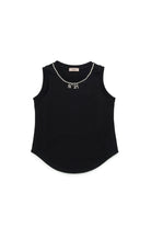 T-shirt in 100% cotton with applied logo and rhinestone detail at the neckline. Sleeveless style with a minimalist cut.