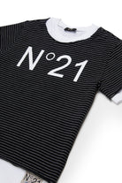 Striped T-shirt with N°21 logo. The model features a double-layer design and contrasting details.